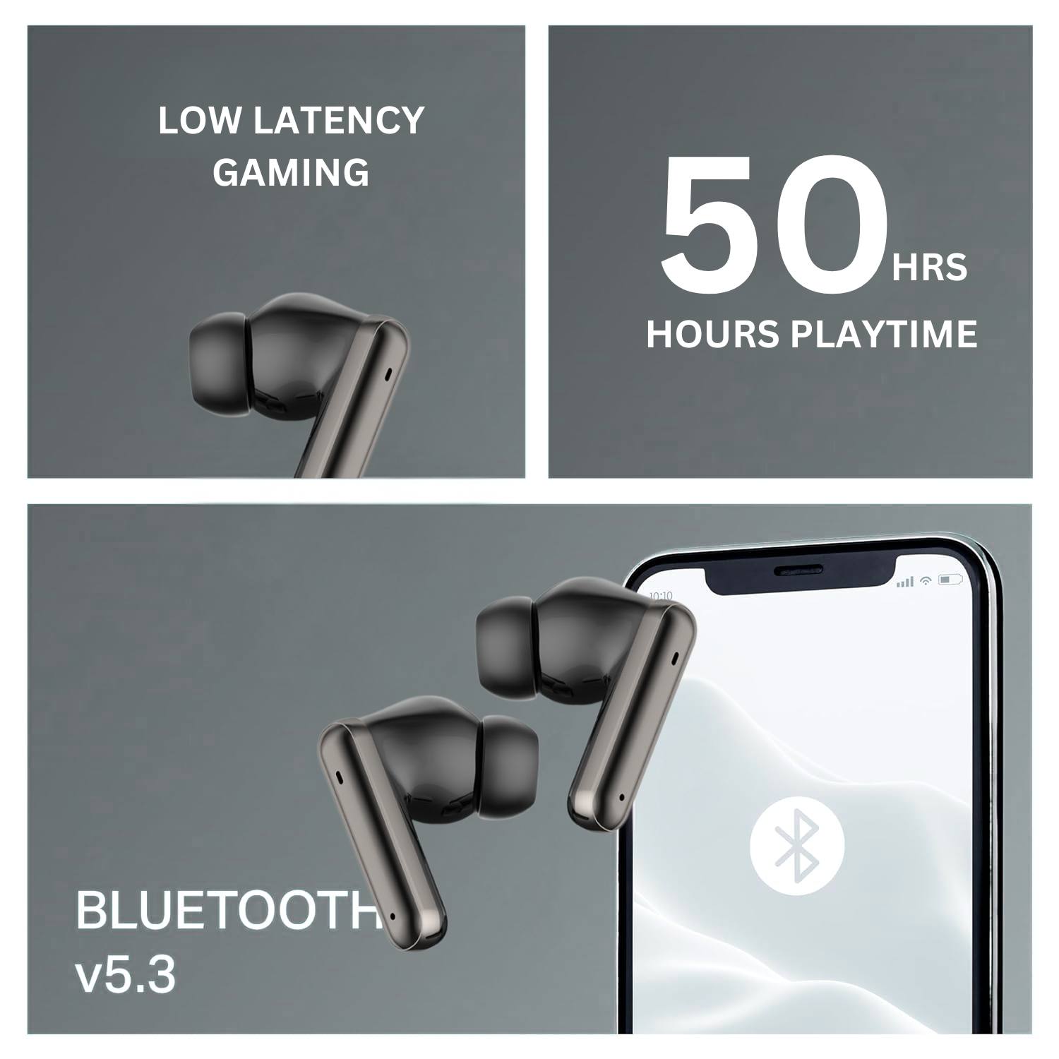 GearzTouch Pulse True Wireless Earbuds – 50 Hours Battery | Super Bass | Adaptive Noise Canceling